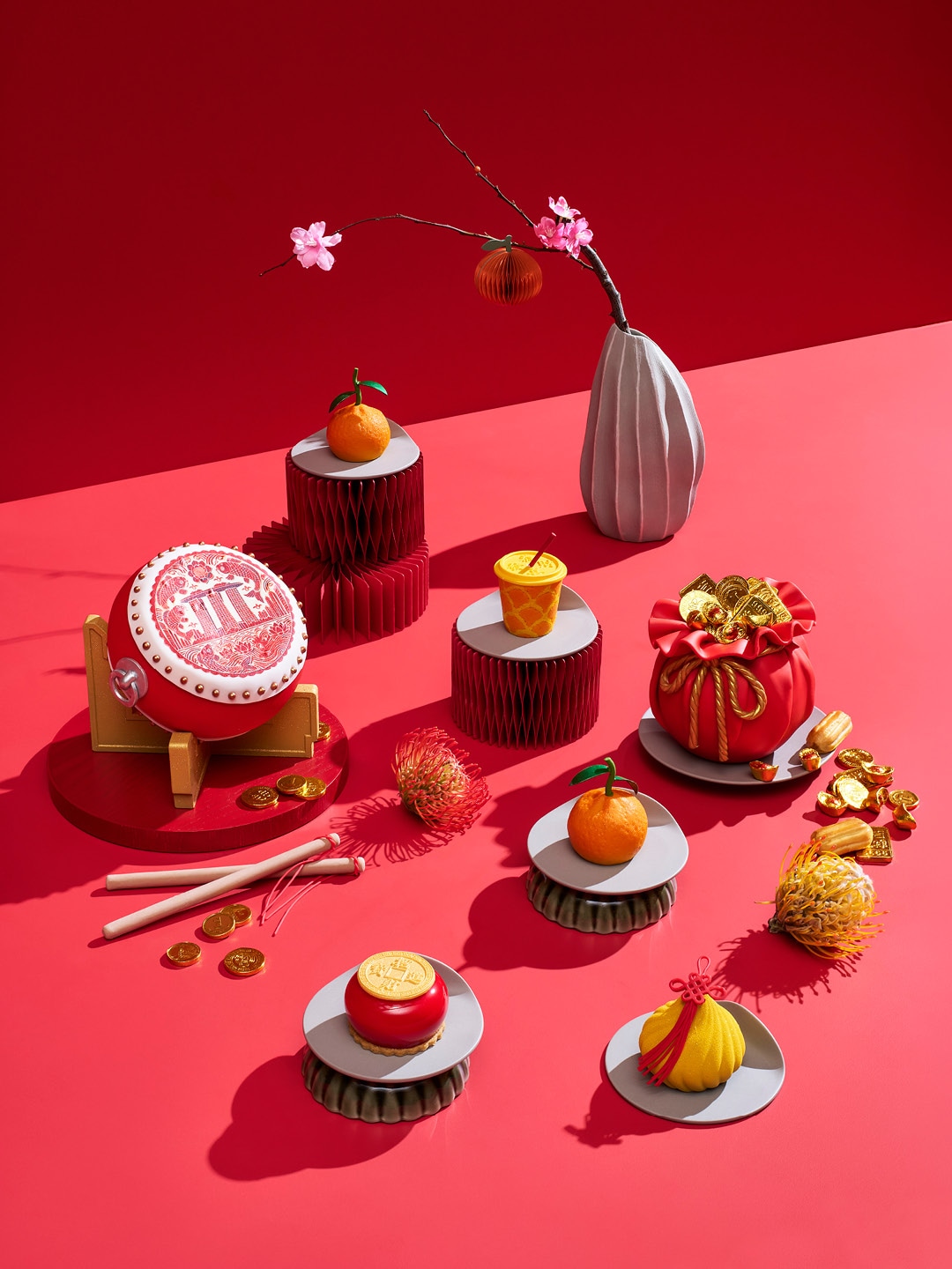 정성껏 준비한 맛있고 달콤한 간식으로 뱀의 해를 더욱 기쁘게 즐겨보세요. 하이라이트 메뉴로는 중국 전통 북 모양의 누가에 선명한 주황빛 캔디로 물고기 문양을 새겨 장식하여 재미있으면서도 강인한 느낌을 주는 번영의 잉어 북(Prosperity Koi Drum) 등이 있습니다. 새해의 풍요를 상징하는 설날 선물 바구니도 주문 가능합니다.