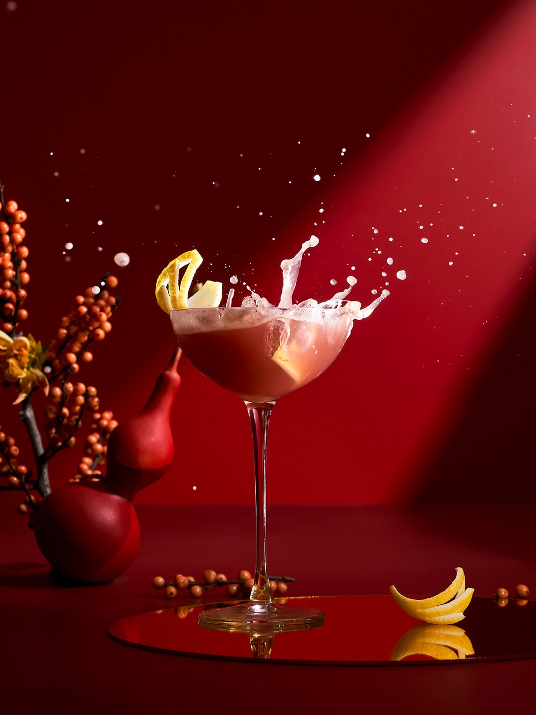 메이커스 마크 버번의 따뜻함과 트리플 탠저린 리큐어의 밝고 달콤한 맛이 어우러진 포춘 탠저린 칵테일(Fortune Tangerine Cocktail)을 포함한 리미티드 에디션 명절 음료로 새해를 시작해보세요. 캄파리의 달콤쌉쌀한 묘한 맛이 조화를 이루는 이 칵테일에는 행운을 부르는 귤 한 조각이 토핑되어 있습니다.