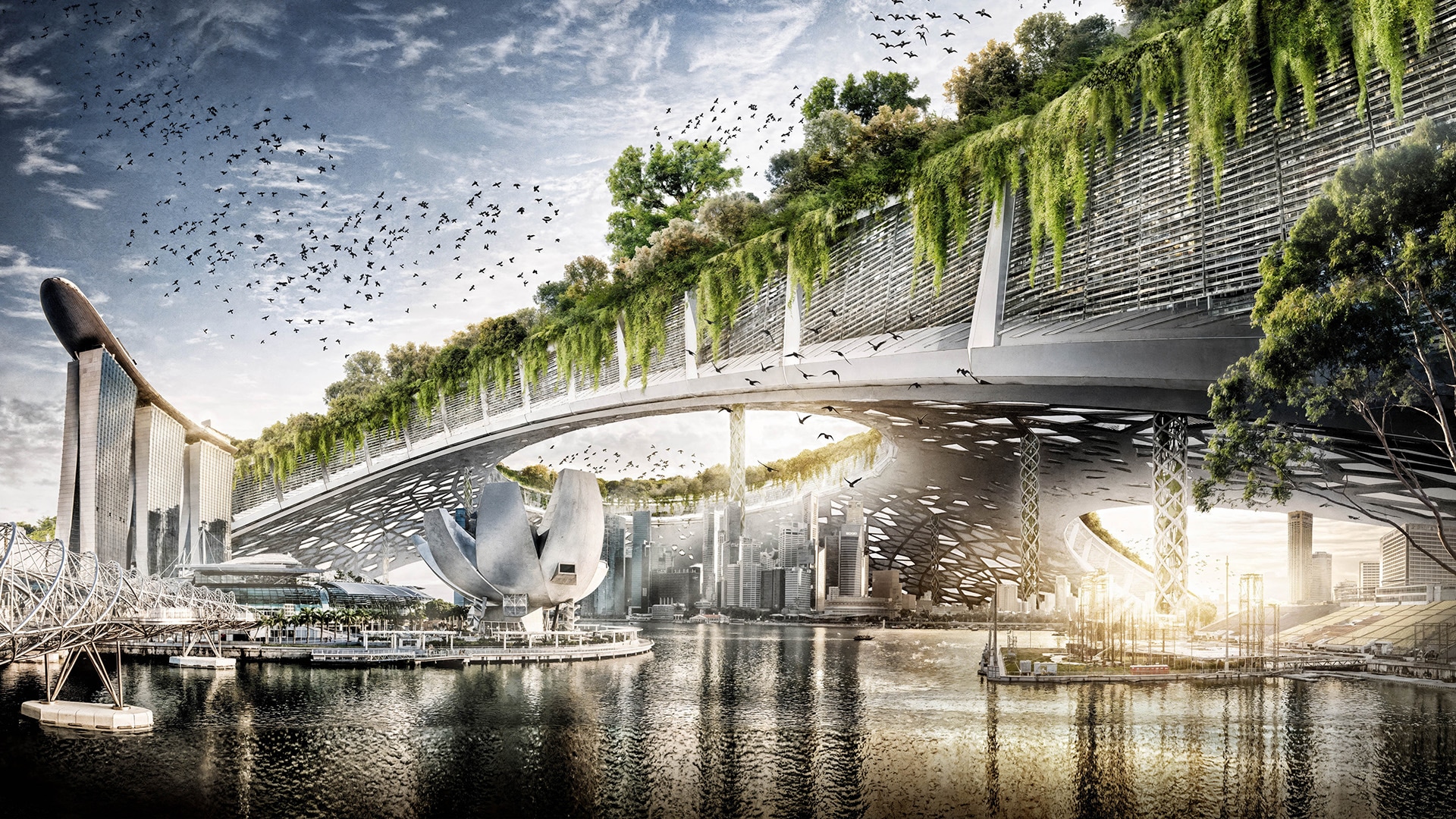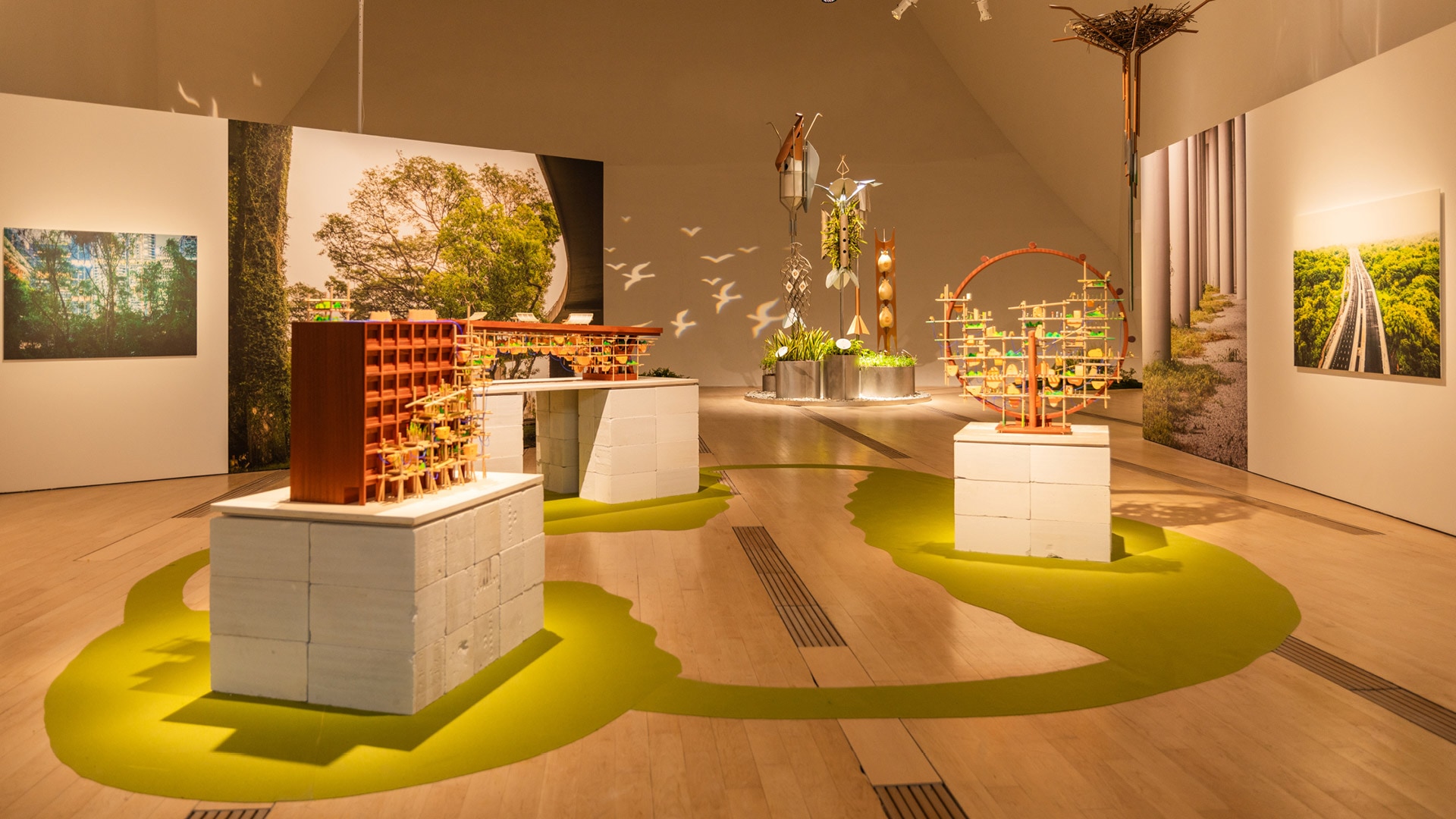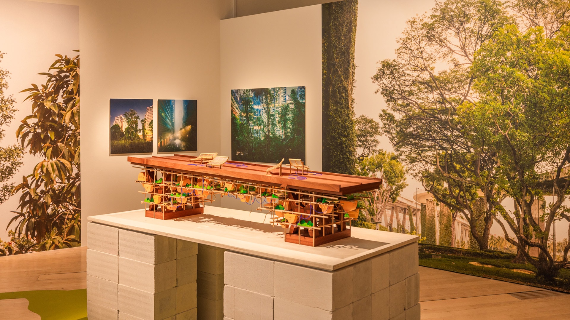 이 전시는 장기적 사고, 환경 실용주의, 공동체적 책임 윤리를 바탕으로, 미래를 향한 싱가포르만의 독특한 접근 방식을 반영합니다. 서구 대중문화에서 흔히 볼 수 있는 디스토피아적 분위기와는 반대로, 싱가포르는 미래를 설계하고 논의하며 적극적으로 구축해야 할 대상으로 여기고 있습니다. 이러한 감수성은 WOHA의 생물 다양성 수직 도시부터 Pomeroy Studio의 수상 농장에 이르기까지, 전시의 건축, 디자인, 예술 작품을 통해 드러납니다.